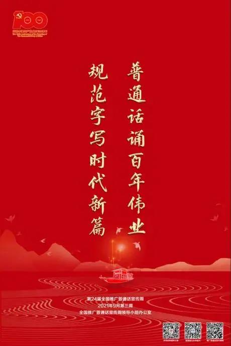 2021年是中国共产党成立100周年,也是“十四五”开局之年。结合党史学习教育、庆祝中国共产党成立100周年“永远跟党走”群众性主题宣传教育活动等,广泛、深入开展形式多样、内容丰富、特色鲜明的推广普及国家通用语言文字和传承弘扬中华优秀语言文化相关活动,深入学习领会贯彻落实习近平总书记等中央领导同志关于做好推广普及国家通用语言文字工作的重要指示精神,落实全国语言文字会议决策部署,推进实施国家通用语言文字普及提升工程,营造全社会学习使用国家通用语言文字的良好氛围,促进各民族交往交流交融,共诵百年伟业,携手共写时代新篇。