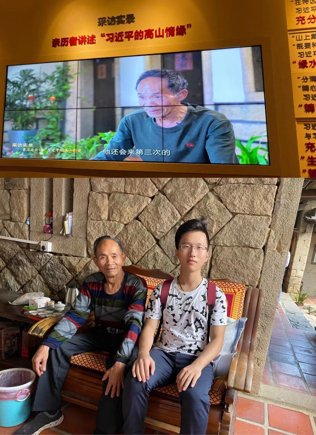随后,同学们沿着西部登山步道,登临防空哨所,参观老党员、军营村原村委会主任高泉国的旧居,并有幸与高泉国爷爷进行了交流,虽已时隔多年,高泉国爷爷依旧清晰地记得习近平总书记亲切的模样,他与同学们分享了习近平总书记两度调研、访贫问苦、关心群众的情景。