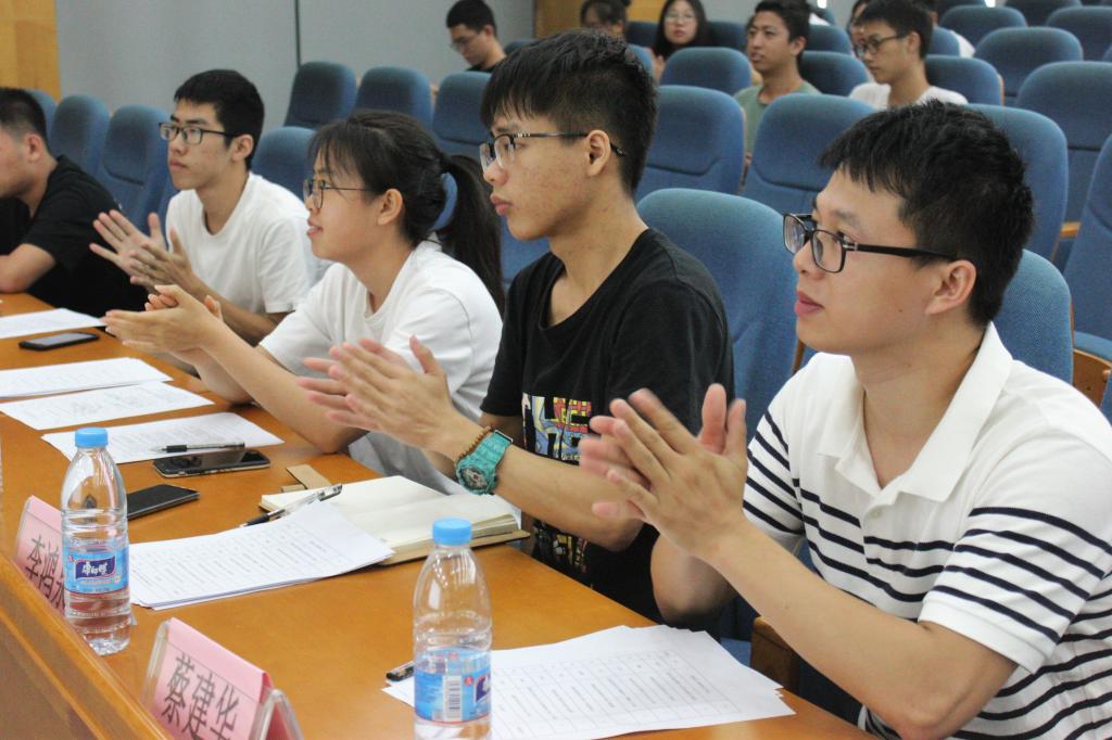 在G101举行了2019年暑期社会实践评比会。出席本次会议的评委有材料学院团委副书记蔡建华老师,兼职辅导员李鸿泉老师,团委副书记余煜炼,学生会主席陈敬轩、副主席矣施圆以及各实践团队成员。