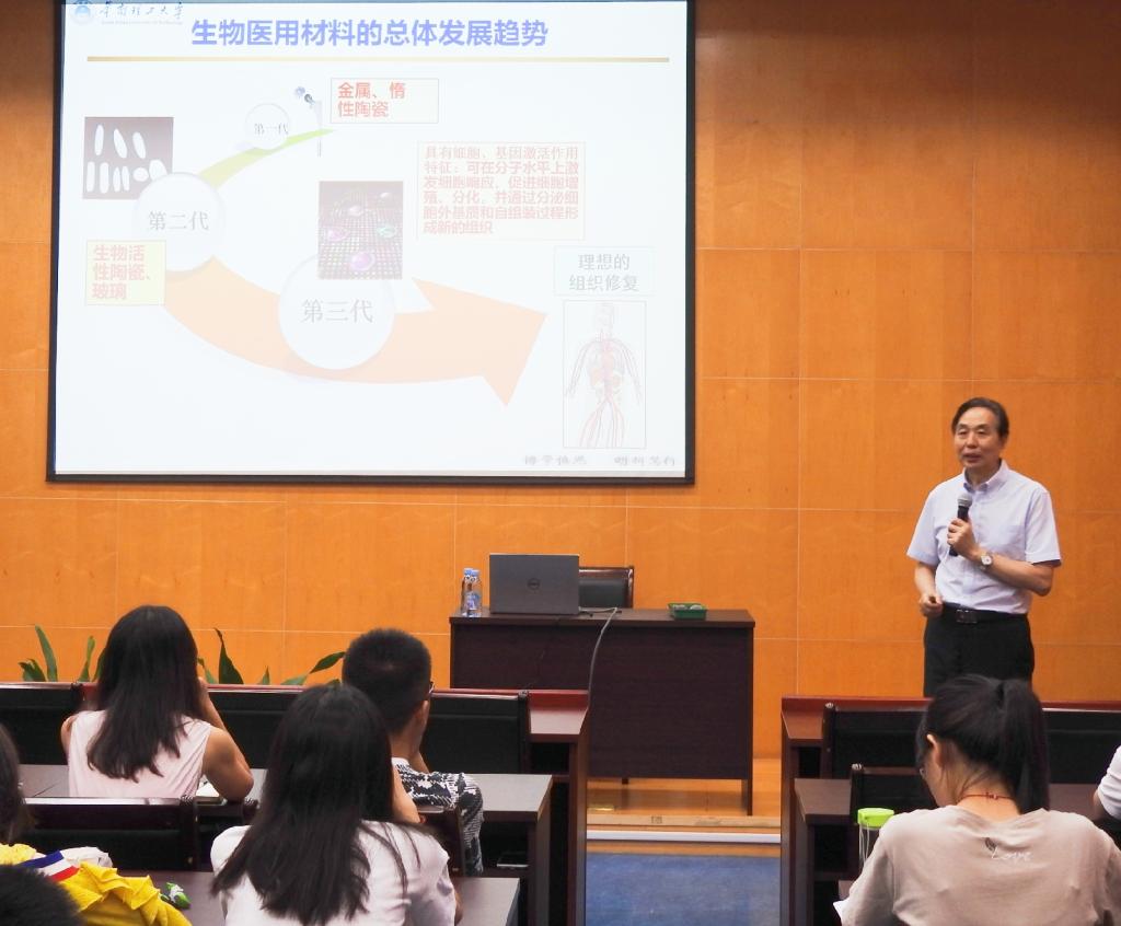 2018年7月14日上午,华南理工大学生物医学材料与工程中心主任陈晓峰教授、中国工程院院士蹇锡高院士莅临我院,并做了“材料与化学论坛”本年度的第十三、十四讲报告。报告会由王士斌院长主持,校领导吴季怀副校长及材料学院部分教师和研究生参加聆听了此次报告。
