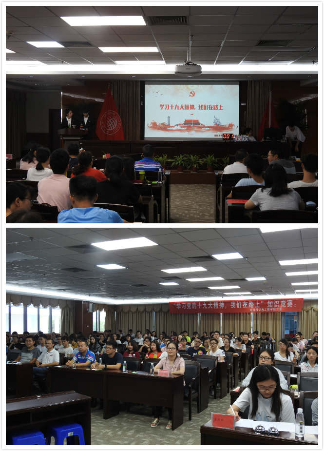 研究生第一党支部承办的“学习十九大精神,我们在路上”知识竞赛,在图书馆二楼学术报告厅如期进行,学校宣传部朱考华老师应邀参加活动,学院党员及入党积极分子代表到场观摩学习。