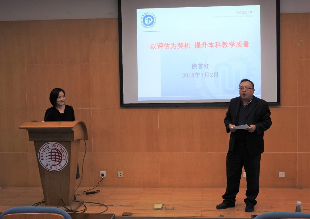 2018年1月2日下午,华东理工大学化学与分子工程学院副院长徐首红教授、化学系主任徐志珍教授莅临我院开展“材料与化学论坛”本年度的首场报告。两位教授分别作了题为《以评估为契机,提升本科教学质量》和《以评促建、以评促改——学院具体工作》的教学讲座。本次报告会由王士斌院长主持,材料学院全体教师聆听了此次报告。