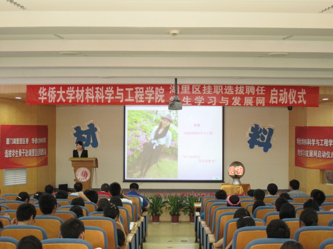 4月22日下午,材料学院学生学习与发展网启动仪式暨选拔学生骨干赴湖里区挂职锻炼面试在厦门校区G-201盛大开幕。厦门市湖里区团区委樊帆、校团委副书记王晶、校党委宣传部朱考华、材料学院党总支书记季娜莅临指导,此外,学院团委书记胡璐、辅导员陈俊源、李振宏也到场参加,学院两百余名同学前来现场观看。