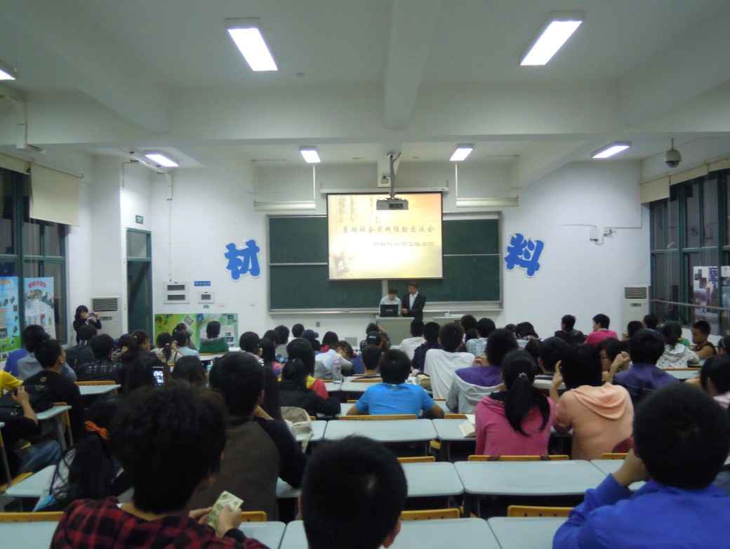 4月7日,我院在E4-201召开暑期社会实践交流会。学院团委书记胡璐、辅导员李振宏莅临指导,2011年暑期实践各优秀团队代表到场为有志参加今年暑期社会实践的同学们作交流。