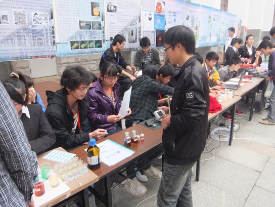 本次校评审作品多达120件,我院参赛的有连续套管式空气曝气填料层磷回收新装置、催化法制备生物柴油、石墨烯导电薄膜研制、耐黄羽毛球拍紫外光固化涂层研发、快速检测Hg2+——双色荧光复合物的制备及其应用、新型固体酒精的研发及应用、临界水法提取大豆异黄酮、有机荧光材料8个项目。