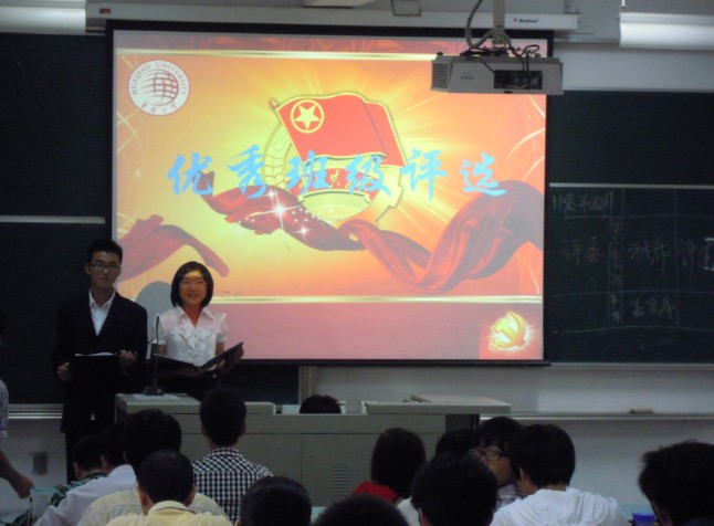 10月23日下午,我院2010-2011学年先进班级评选汇报会在D5-101举行。学院团委书记胡璐、辅导员李振宏、陈俊源莅临现场指导。学院各个班级的同学到场观看,现场座无虚席。