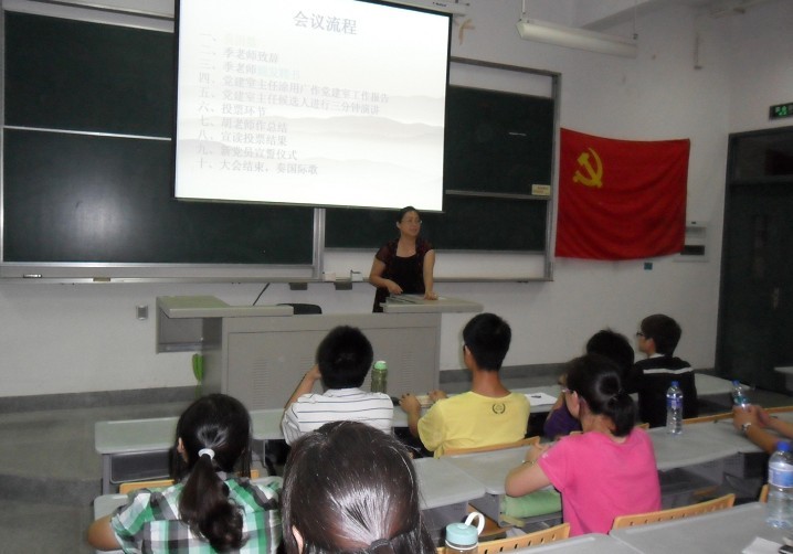 6月10日晚7点,在雄壮的国歌声中,我院第二届党建室换届大会在D5-201教室隆重开幕。出席此次大会的嘉宾有院党总支书记季娜老师、本科生党支部书记胡璐老师、辅导员陈俊源老师以及08、09、10级班级团支书。