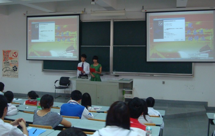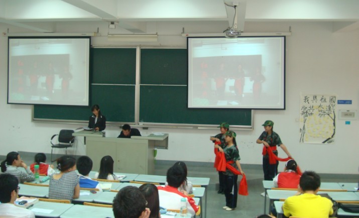 为庆祝建党90周年,纪念辛亥革命100周年,我院各班级积极组织以“我与祖国共奋进”为主题的主题图案日活动。在为期一个月的活动之后,5月15日下午,我院主题团日汇报展示暨优秀主题团日评选在D5-103落下帷幕。来自08、09、10三个年级的15个班级参加了此次展示。团委书记胡璐到场观看了此次评选。