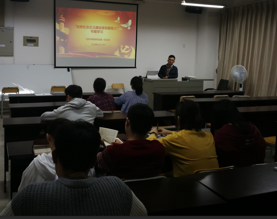 研究生第一党支部在泛华科技大楼A535开展“培养社会主义建设者和接班人”专题学习活动,会议由党支部书记廖世昌同志主持。