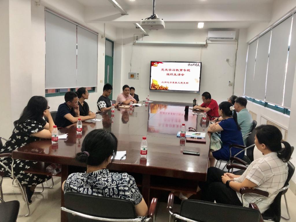 应用化学系教工支部在会议室召开了党史学习教育专题组织生活会,会议由党支部书记陈亦琳主持,支部全体党员参加,学院党委书记蔡浩出席本次会议。