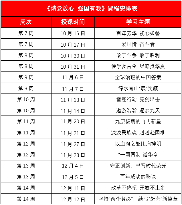 据悉,此次党建学习以学生讲党课为主体,以学习“七一”重要讲话精神为主线,以“支部党员领学、发展对象助学、积极分子伴学”的“1+1+1”方式进行,内容将以《点星星之火 燎万里征程》《奋斗百年路 启航新征程》《中国之答卷》《时代的旋律》四个篇章展开,安排16期专项学习,号召各年级党员、入党积极分子、共青团员共同参与,旨在引领大学生从党史中汲取力量,做到“学党史、悟思想、办实事、开新局”,以实际行动助力“侨校+名校”的建设。