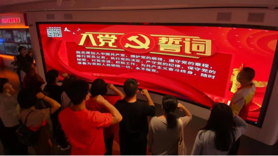 随后,教工党员们参观了富有特色的5G+AR党史馆,展馆内分为“红色记忆学史崇德”“入党宣誓不忘初心”“特色互动红心向党”三大区域,通过AR探究镜、VR一体机、AI拍机等高科技设备,党员们身临其境地感受了中国共产党历史、嘉庚精神、“薪火相传”厦门红色记忆、集美红色资源、集美城市建设等内容。通过此次身临其境的党史学习,教工党员们对嘉庚精神的时代意义,对嘉庚精神的核心“忠公、诚毅、勤俭、创新”有个更深刻的认识。最后,在场景式入党宣誓台前,支部全体党员庄严地举起右手,重温入党誓词,牢记入党初心使命。