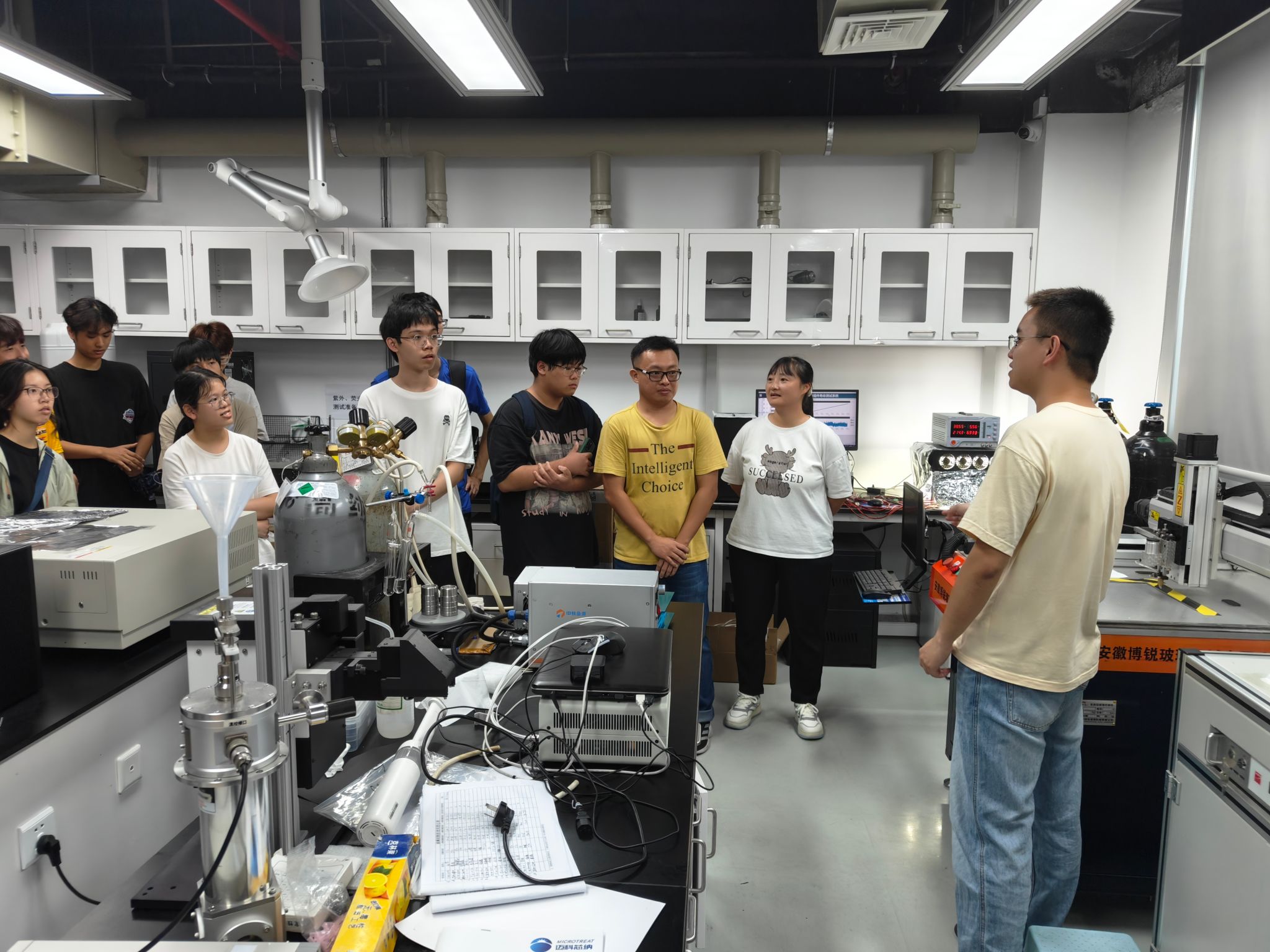 随后,新生们参观了研究院的实验室。在党员学生的引导下,新生们对实验室内的先进科研设备进行了参观和了解。党员学生细致讲解了各类仪器设备的功能、使用方法及其在科研中的核心作用,帮助新生们对实验室的科研环境和设备有了更加深入的认识,并进一步明确了自身未来的研究方向和学术目标。